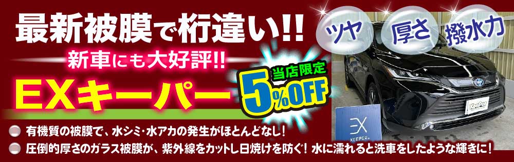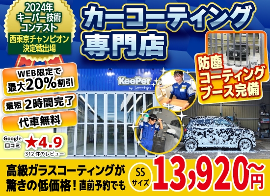 当HPをご覧になったお客様限定で、全てのコーティングの施工料金全メニュー20%割引を実施中!また、他社にはないお得な特典もお客様にご提供しております。キーパーコーティングをお考えのお客様は、是非、当店にお任せください!