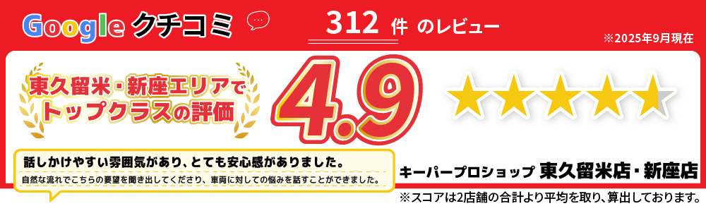 施行後のフォロー体制も安心できるもので、所有しているもう1台の車両も、是非こちらでコーティングを施行したい気持ちになりました。